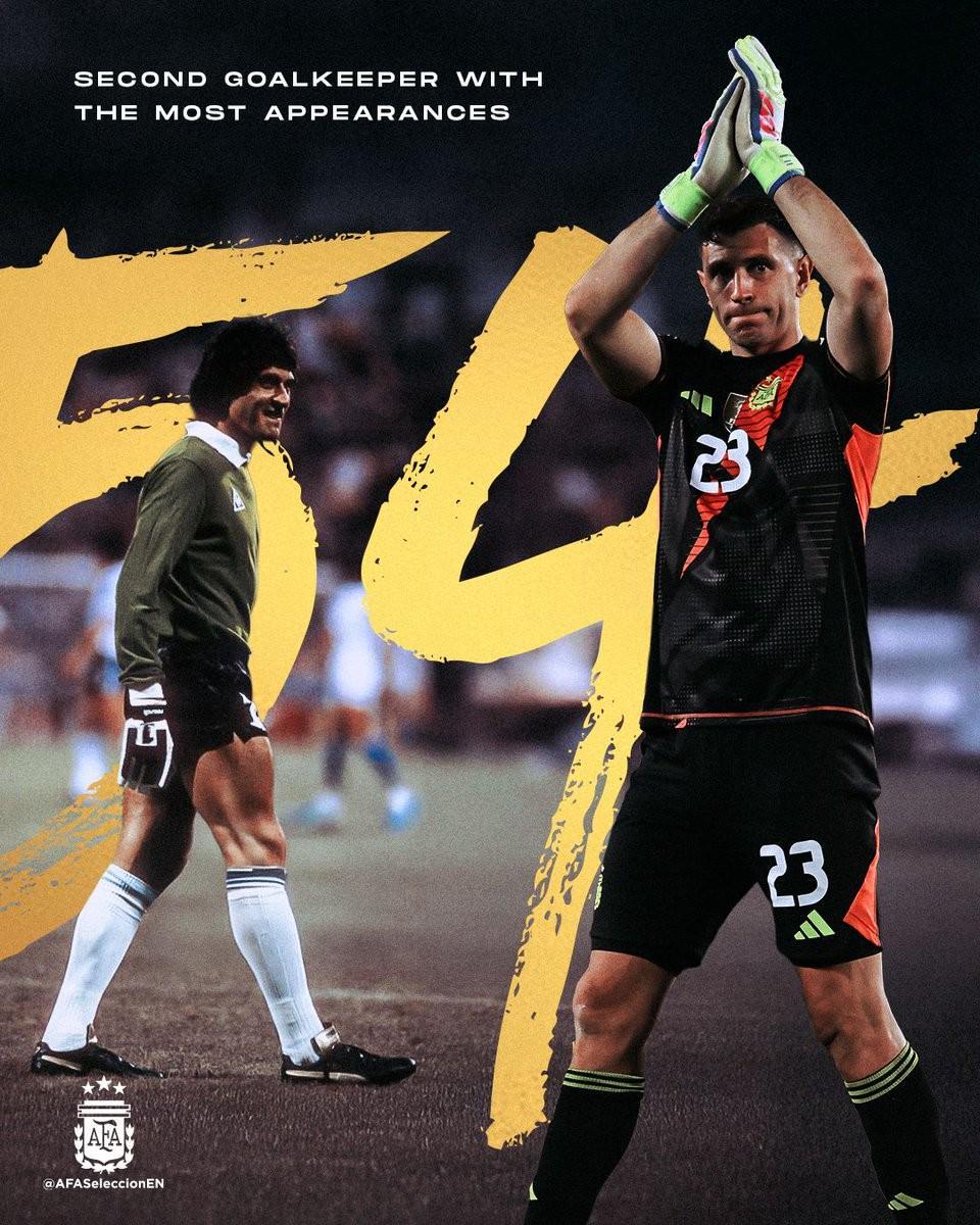 在与委内瑞拉的世预赛中,达米安-马丁内斯以54次出场追平菲略尔,成为阿根廷国家队史上出场次数第二多的门将。